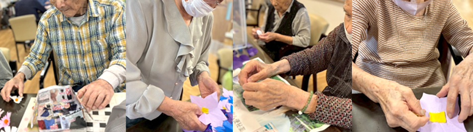 全員参加で秋が来る!みなさん大作貼り絵に真剣!